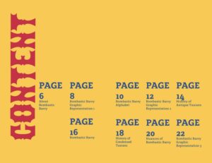 Being a mashup of both Athenian and Tuscan wood types, Bombastic Barry was conceptualized to be an energetic type style that exudes eagerness and impulsiveness. Decorative serifs inspired by Athenian woodtype are shown to evoke a sense of enthusiasm. Its Gothic Tuscan inspired bowls and squashed counters are used to communicate improvisation. The typestyle was made into a type book featuring descriptions of the type’s nuances and showcasing it being used in various ways.